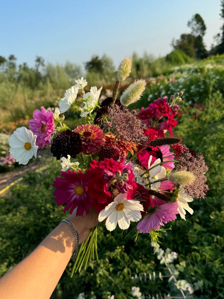 Niets is mooier dan een vers geplukt boeket van lokale bloemen, rechtstreeks uit onze pluktuin. Milieubewust, zonder langdurig transport.